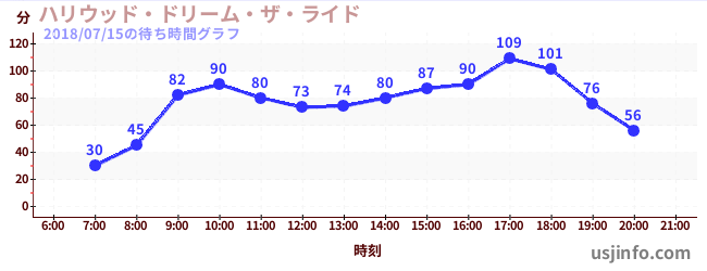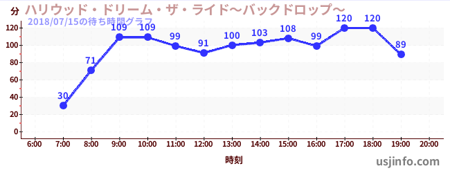 • ハリウッド・ドリーム・ザ・ライド〜バックドロップ〜$B$N(B2018年07月15日の待ち時間
