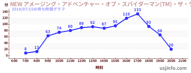 • NEW アメージング・アドベンチャー・オブ・スパイダーマン(TM)・ザ・ライド 4K3D$B$N(B2018年07月15日の待ち時間