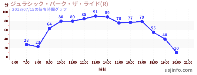 • ジュラシック・パーク・ザ・ライド(R)$B$N(B2018年07月15日の待ち時間