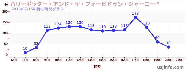 • ハリーポッター・アンド・ザ・フォービドゥン・ジャーニー™$B$N(B2018年07月15日の待ち時間