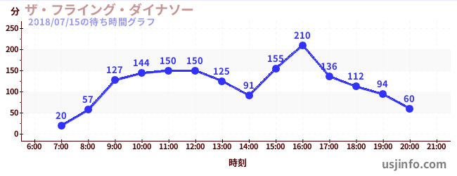 • ザ・フライング・ダイナソー$B$N(B2018年07月15日の待ち時間