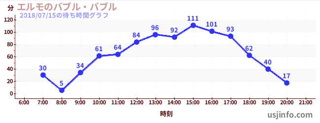 • エルモのバブル・バブル$B$N(B2018年07月15日の待ち時間