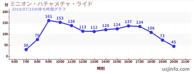 • ミニオン・ハチャメチャ・ライド$B$N(B2018年07月15日の待ち時間