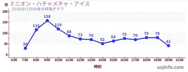 • ミニオン・ハチャメチャ・アイス$B$N(B2018年07月15日の待ち時間