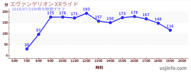 • エヴァンゲリオン XRライド$B$N(B2018年07月15日の待ち時間