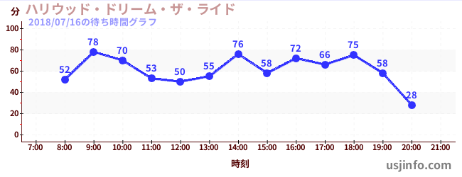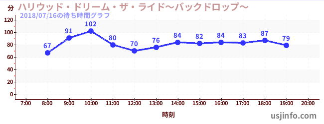• ハリウッド・ドリーム・ザ・ライド〜バックドロップ〜$B$N(B2018年07月16日の待ち時間
