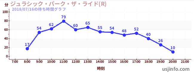 • ジュラシック・パーク・ザ・ライド(R)$B$N(B2018年07月16日の待ち時間