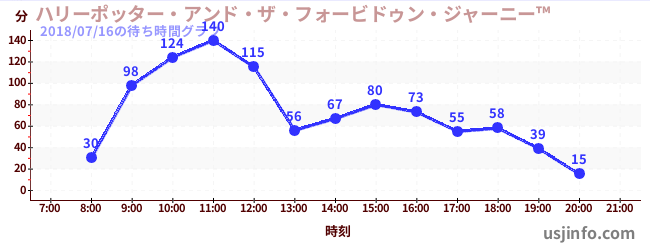 • ハリーポッター・アンド・ザ・フォービドゥン・ジャーニー™$B$N(B2018年07月16日の待ち時間