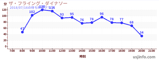 • ザ・フライング・ダイナソー$B$N(B2018年07月16日の待ち時間