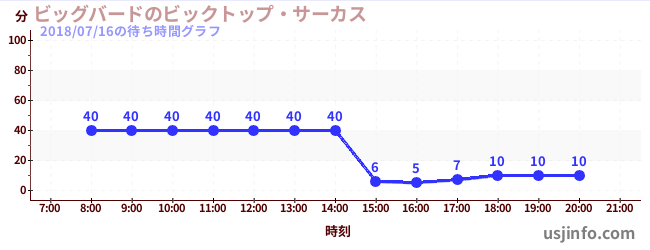 • ビッグバードのビックトップ・サーカス$B$N(B2018年07月16日の待ち時間