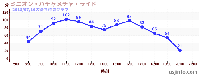 • ミニオン・ハチャメチャ・ライド$B$N(B2018年07月16日の待ち時間