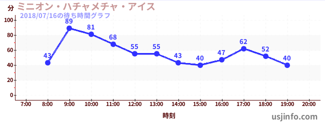 • ミニオン・ハチャメチャ・アイス$B$N(B2018年07月16日の待ち時間