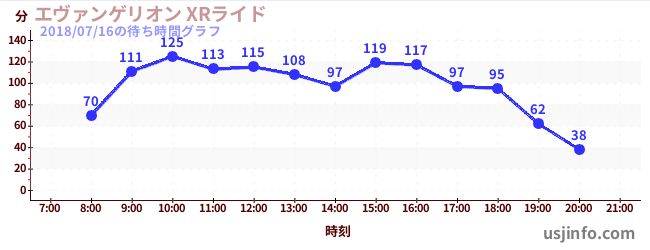 • エヴァンゲリオン XRライド$B$N(B2018年07月16日の待ち時間
