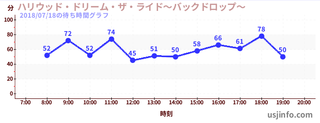 • ハリウッド・ドリーム・ザ・ライド〜バックドロップ〜$B$N(B2018年07月18日の待ち時間