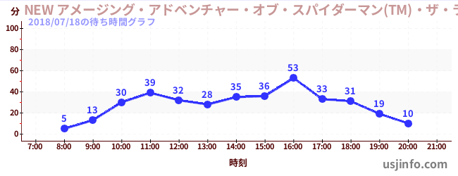 • NEW アメージング・アドベンチャー・オブ・スパイダーマン(TM)・ザ・ライド 4K3D$B$N(B2018年07月18日の待ち時間
