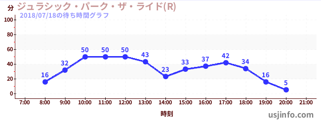 • ジュラシック・パーク・ザ・ライド(R)$B$N(B2018年07月18日の待ち時間