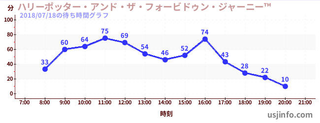 • ハリーポッター・アンド・ザ・フォービドゥン・ジャーニー™$B$N(B2018年07月18日の待ち時間