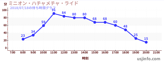 • ミニオン・ハチャメチャ・ライド$B$N(B2018年07月18日の待ち時間