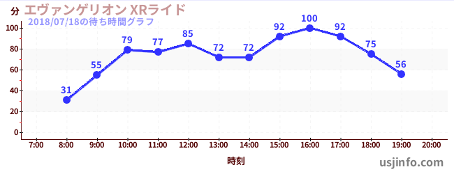 • エヴァンゲリオン XRライド$B$N(B2018年07月18日の待ち時間
