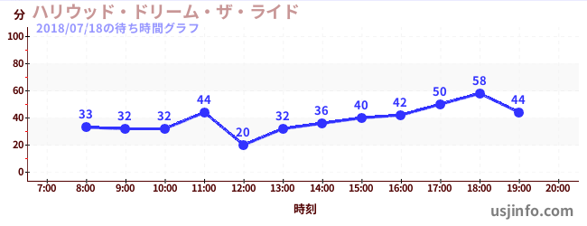 • ハリウッド・ドリーム・ザ・ライド$B$N(B2018年07月18日の待ち時間