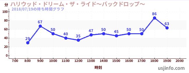• ハリウッド・ドリーム・ザ・ライド〜バックドロップ〜$B$N(B2018年07月19日の待ち時間