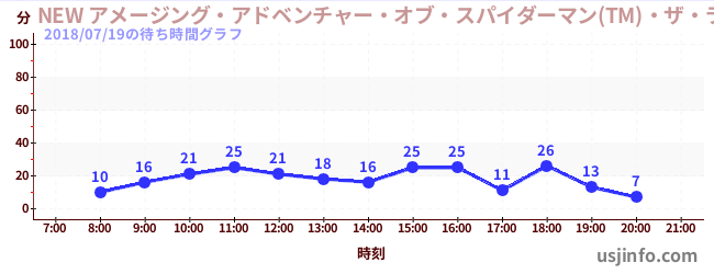 • NEW アメージング・アドベンチャー・オブ・スパイダーマン(TM)・ザ・ライド 4K3D$B$N(B2018年07月19日の待ち時間