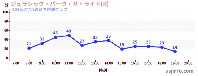 • ジュラシック・パーク・ザ・ライド(R)$B$N(B2018年07月19日の待ち時間