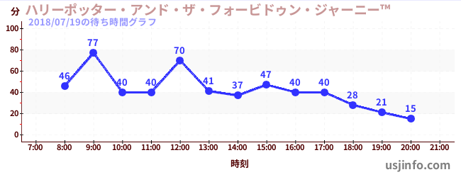 • ハリーポッター・アンド・ザ・フォービドゥン・ジャーニー™$B$N(B2018年07月19日の待ち時間