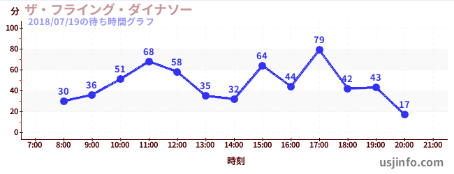 • ザ・フライング・ダイナソー$B$N(B2018年07月19日の待ち時間