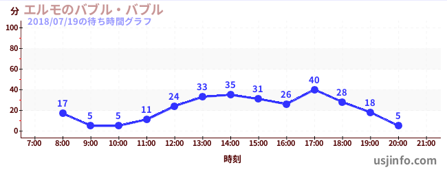 • エルモのバブル・バブル$B$N(B2018年07月19日の待ち時間