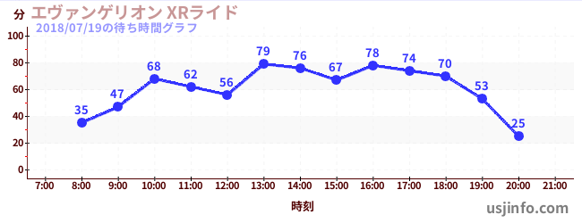 • エヴァンゲリオン XRライド$B$N(B2018年07月19日の待ち時間