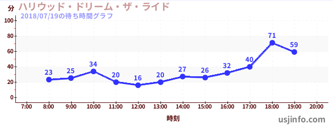 • ハリウッド・ドリーム・ザ・ライド$B$N(B2018年07月19日の待ち時間
