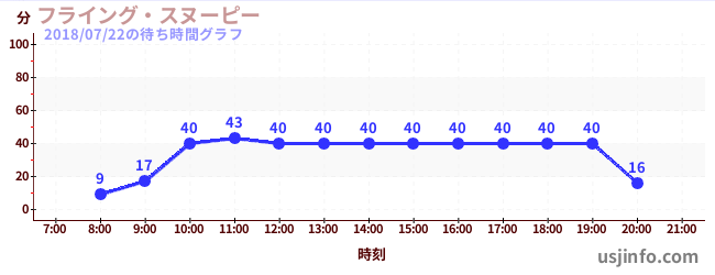 • フライング・スヌーピー$B$N(B2018年07月22日の待ち時間