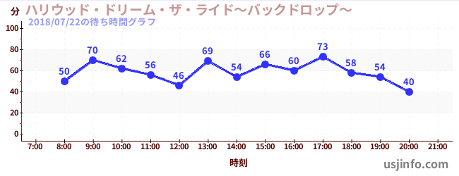 • ハリウッド・ドリーム・ザ・ライド〜バックドロップ〜$B$N(B2018年07月22日の待ち時間