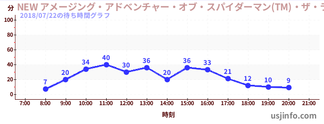 • NEW アメージング・アドベンチャー・オブ・スパイダーマン(TM)・ザ・ライド 4K3D$B$N(B2018年07月22日の待ち時間