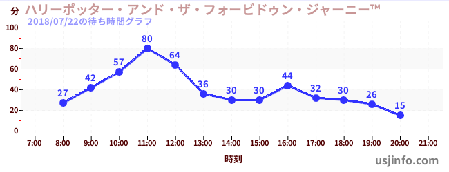 • ハリーポッター・アンド・ザ・フォービドゥン・ジャーニー™$B$N(B2018年07月22日の待ち時間