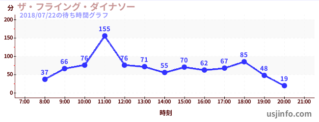 • ザ・フライング・ダイナソー$B$N(B2018年07月22日の待ち時間