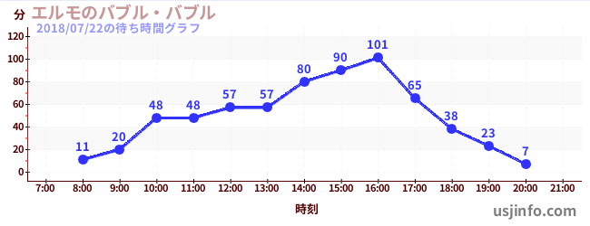 • エルモのバブル・バブル$B$N(B2018年07月22日の待ち時間
