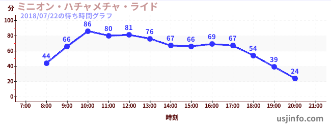 • ミニオン・ハチャメチャ・ライド$B$N(B2018年07月22日の待ち時間