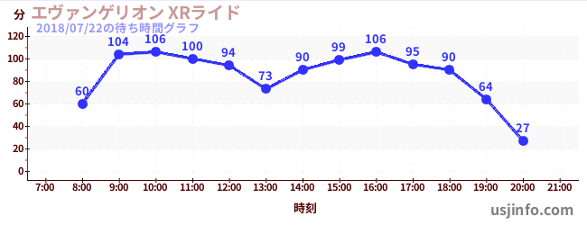 • エヴァンゲリオン XRライド$B$N(B2018年07月22日の待ち時間