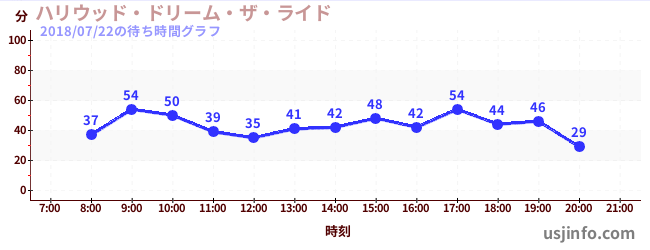 • ハリウッド・ドリーム・ザ・ライド$B$N(B2018年07月22日の待ち時間