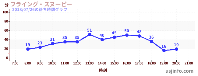 • フライング・スヌーピー$B$N(B2018年07月26日の待ち時間