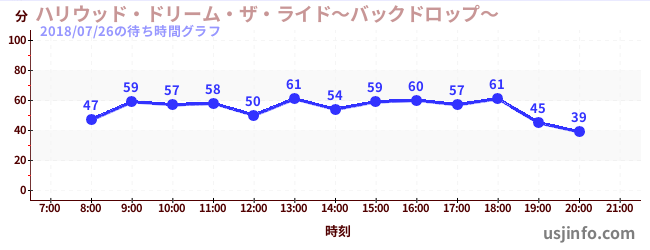 • ハリウッド・ドリーム・ザ・ライド〜バックドロップ〜$B$N(B2018年07月26日の待ち時間