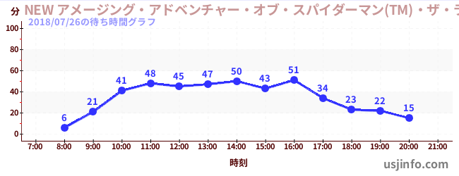 • NEW アメージング・アドベンチャー・オブ・スパイダーマン(TM)・ザ・ライド 4K3D$B$N(B2018年07月26日の待ち時間