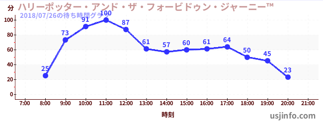 • ハリーポッター・アンド・ザ・フォービドゥン・ジャーニー™$B$N(B2018年07月26日の待ち時間