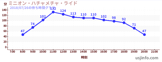 • ミニオン・ハチャメチャ・ライド$B$N(B2018年07月26日の待ち時間