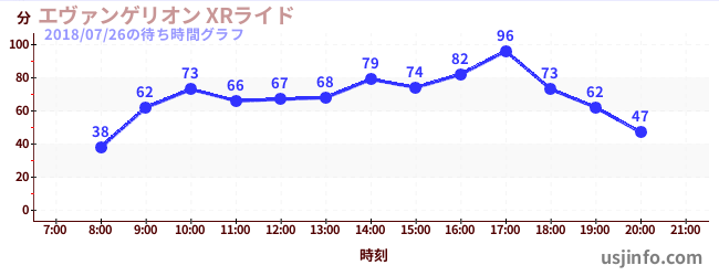 • エヴァンゲリオン XRライド$B$N(B2018年07月26日の待ち時間