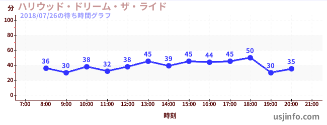 • ハリウッド・ドリーム・ザ・ライド$B$N(B2018年07月26日の待ち時間