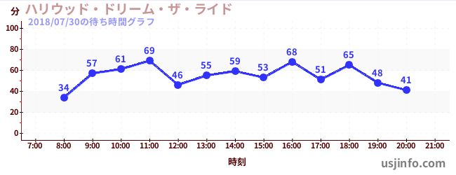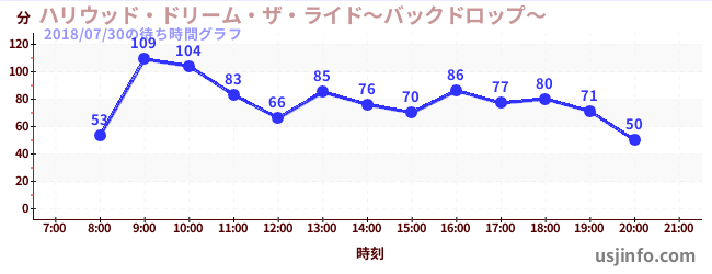 • ハリウッド・ドリーム・ザ・ライド〜バックドロップ〜$B$N(B2018年07月30日の待ち時間