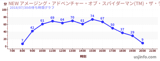 • NEW アメージング・アドベンチャー・オブ・スパイダーマン(TM)・ザ・ライド 4K3D$B$N(B2018年07月30日の待ち時間